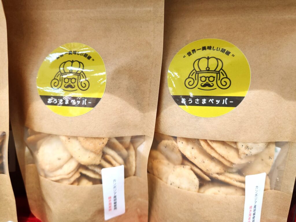 世界一珍しい胡椒といわれる「カンポットペッパー」の胡椒の香りとパンチがしっかり入った他にはない煎餅!えびの濃厚さも合わさり、止まらない美味しさ!